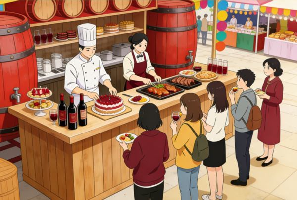 联动红酒打造美食DIY特色餐区,专业厨师与烘焙师精心搭配红酒与美食组合。你可以品尝创意佳肴,更能亲自参与美食DIY活动,如制作红酒蛋糕、红酒炖肉等,感受美食与红酒碰撞出的奇妙火花。